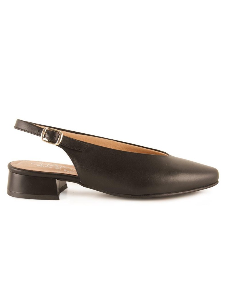 MANOLETINAS DESTALONADAS TACON BAJO PIEL NEGRO