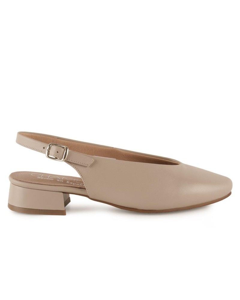 MANOLETINAS DESTALONADAS TACON BAJO PIEL BEIGE