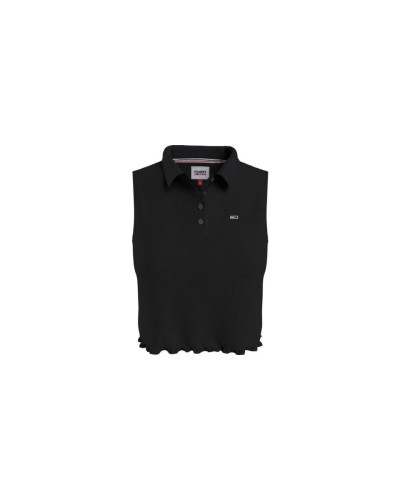 POLO CORTO SIN MANGAS TJW CROP SLEEVELESS RIB POLO 100% ALGODÓN ORGÁNICO BLACK