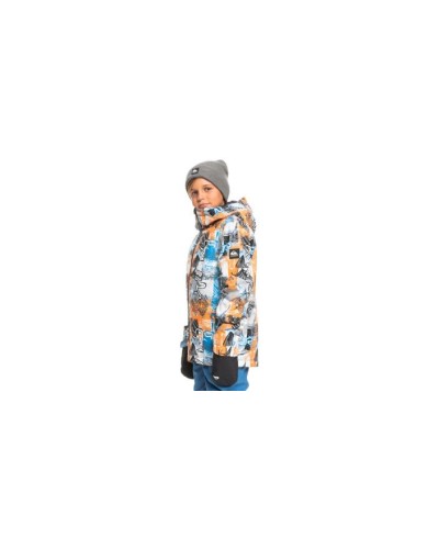Esta chaqueta Quicksilver de niño con tejido liso multicolor posee un recubrimiento interno acolchado que resulta agradable al contacto con la piel sensible.