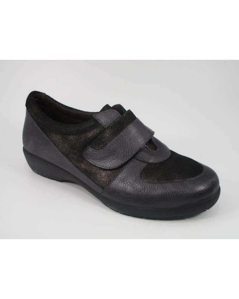 ZAPATO PIEL/CHAROL NEGRO TIRA VELCRO CUÑA BAJA